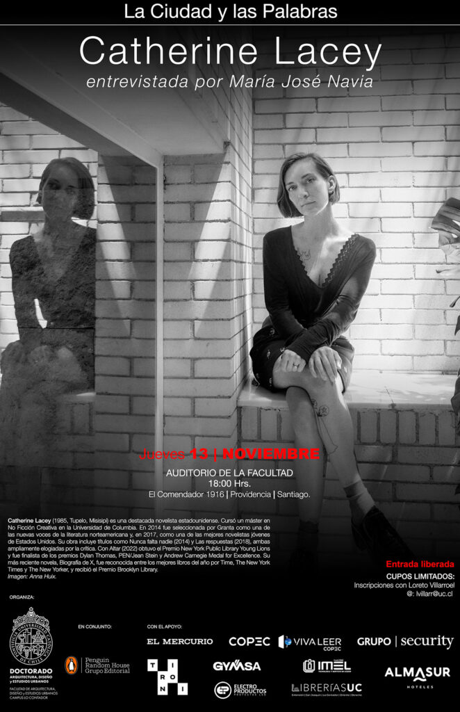 El Doctorado en Arquitectura, Diseño y Estudios Urbanos en conjunto con La Ciudad y las Palabras presenta a la destacada escritora estadounidense Catherine Lacey entrevistada por María José Navia.
