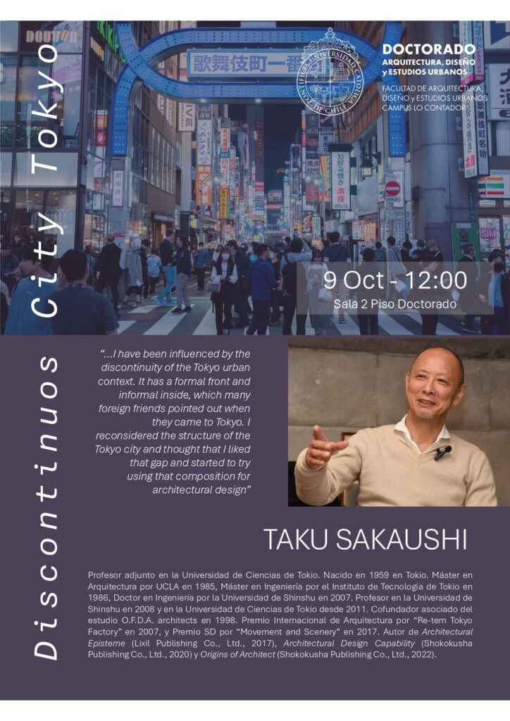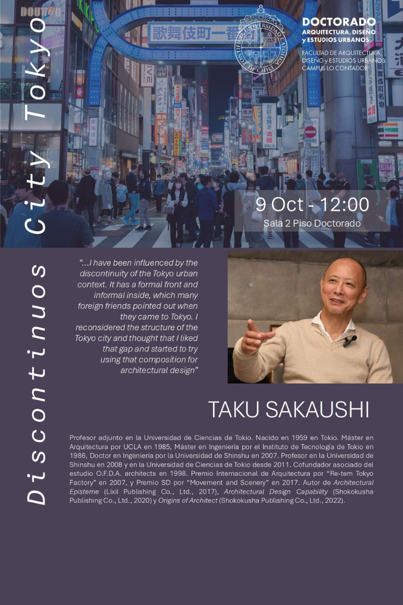 El Doctorado en Arquitectura, Diseño y Estudios Urbanos invita a la charla que dictará el profesor Taku Sakaushi, titulada Discontinuos City Tokyo.